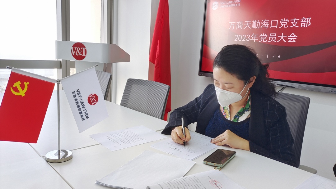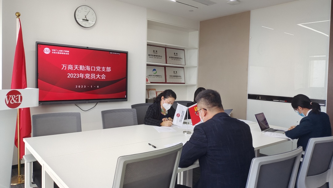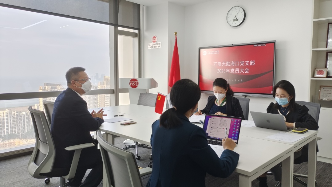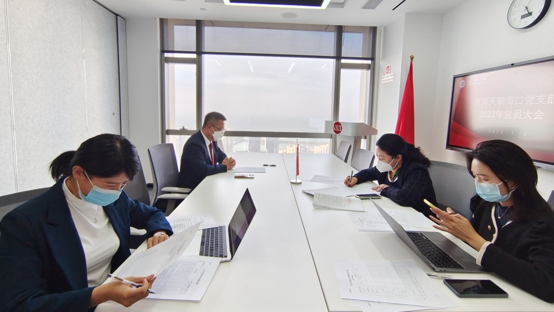 2023年1月6日下午,万商天勤海口党支部召开了2023年党员大会。党支部书记秦波律师、党务秘书吴玲律师、党员张邯丽律师、何蔓律师参加了线下会议,党员付祚律师、符琦律师参加了线上会议。