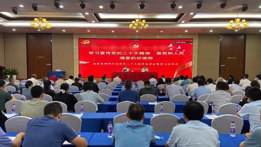 2022年11月24日,中共海南省律师行业委员会在海南大学国际学术交流中心举办学习宣传党的二十大精神宣讲会。宣讲会邀请省社科联党组书记、主席,省社科院院长王惠平就党的二十大精神作专题辅导宣讲。司法厅党委委员、副厅长、省律师行业党委书记陈文彬主持会议。万商天勤海口党支部书记秦波律师亲赴宣讲会线下主会场,党员何蔓、吴玲、张邯丽、付祚、符琦律师参与线上会议。