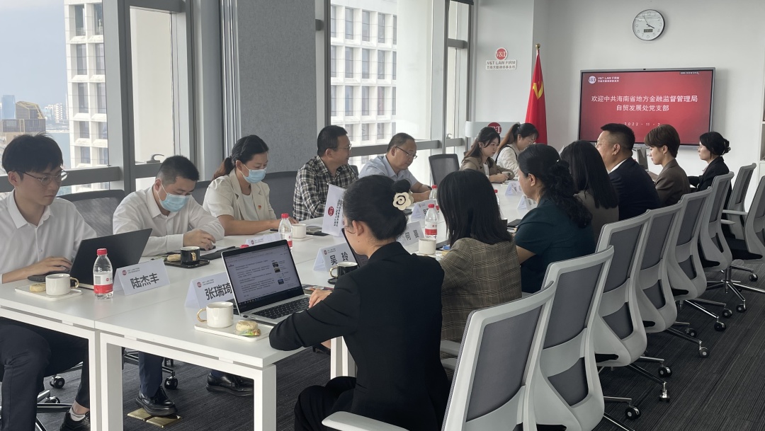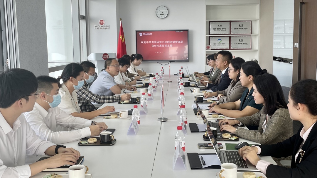 2022年11月2日下午,中共海南省地方金融监督管理局自贸发展处党支部与中共北京万商天勤(海口)律师事务所党支部党建共建,认真学习贯彻党的二十大精神,共话海南自贸港金融开放和发展新机遇。