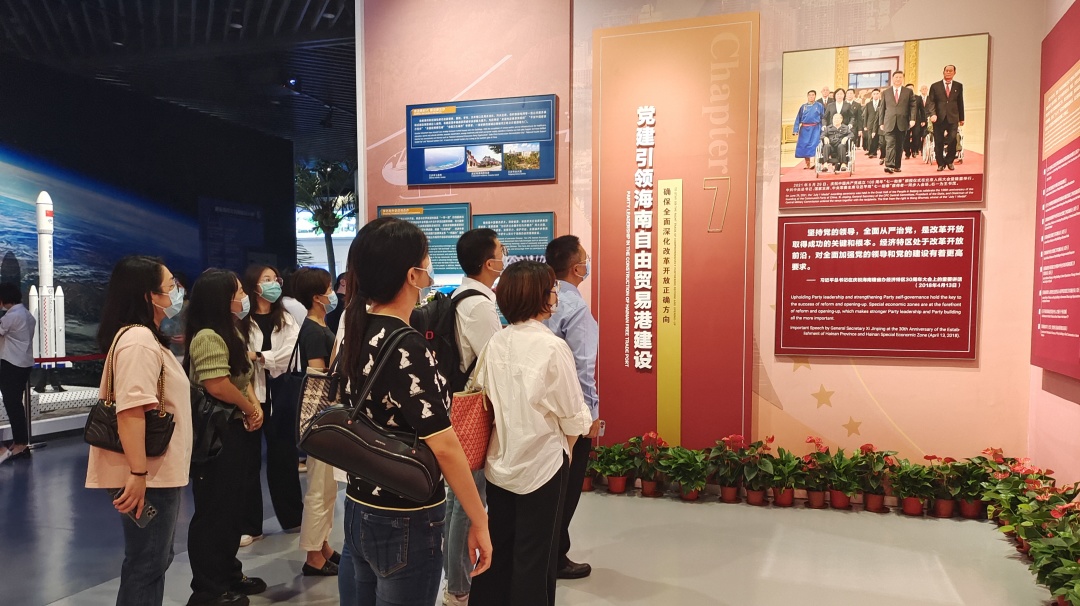 展览从回顾新中国成立以来党和国家领导人对海南发展给予的关怀和期望开始,以海南历史沿革、百年奋斗历程和不同发展时期的战略定位切入,大家通过图文多媒体、沉浸式体验、场景还原等多种展陈重温习近平总书记关于海南工作的系列重要讲话和指示批示精神,了解到党中央赋予海南全面深化改革开放新使命的重大历史意义。