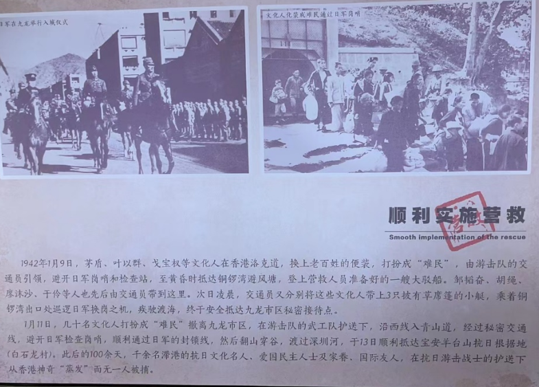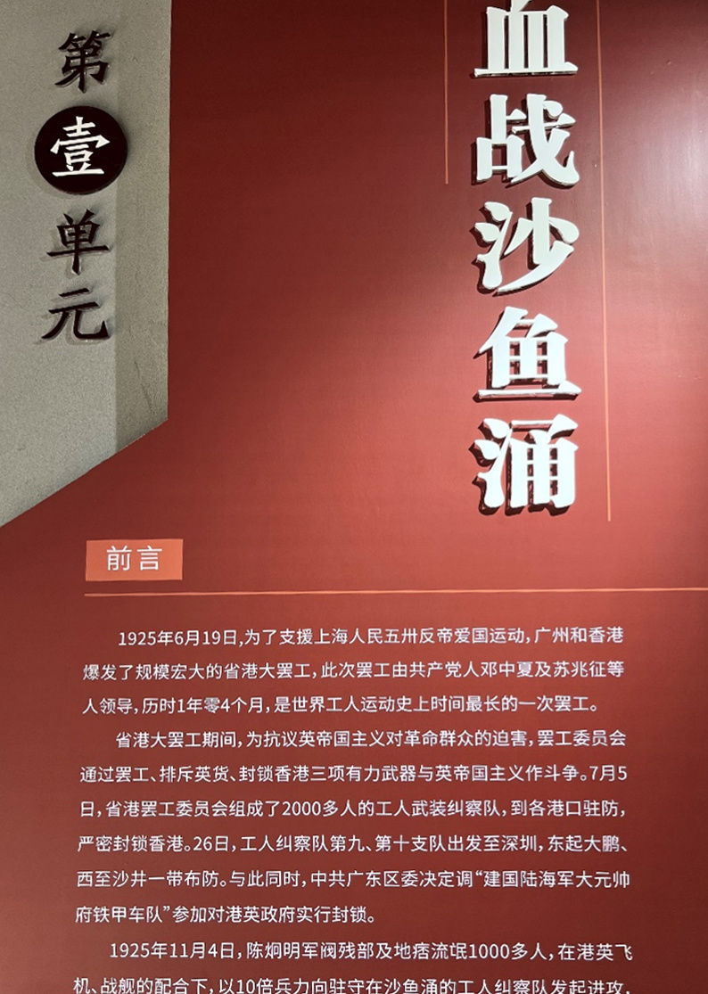 下午继续前往沙鱼涌红色记忆纪念馆参观学习,沙鱼涌红色记忆陈列馆集中展示了历史史料和烈士的遗物等红色资源、历史文化。这里曾是1946年东江纵队北撤的地方,也是香港沦陷后,东江纵队秘密营救茅盾、邹韬奋等人的登岸地点。大家仔细观看纪念馆珍藏的照片、文物,每一张图片、文物背后都有一个感人涕下的故事。红色陈列馆记录了抗日战争结束后,根据国共两党重庆谈判签署的协定,东江纵队主力需北撤烟台的情形。