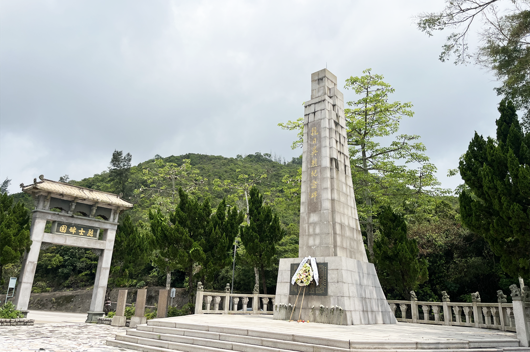 徒步开始前,万商天勤党员及群众怀着无比崇敬的心情来到香港斩竹湾抗日英烈纪念碑前,了解先辈的英勇抗战事迹,缅怀在抗战中为国家民族的独立和解放英勇牺牲的烈士。