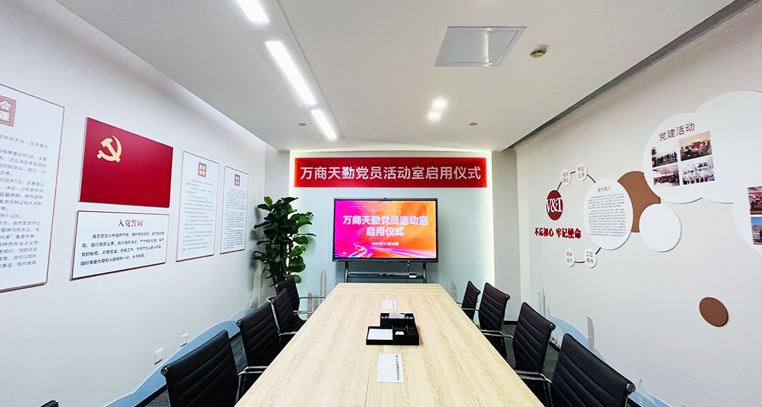 党建活动室用于展示党建荣誉、学习教育、召集会议、交流共建等,既是党建阵地,也是沟通平台,便于发挥桥梁和纽带作用,进一步密切党群关系,促进党建工作的深入开展。同时有利于展示万商天勤的律所文化,增加客户的信赖和认可度,并营造团结向上、容融和合的氛围,增强党员的认同感和归属感,增强党组织的凝聚力。