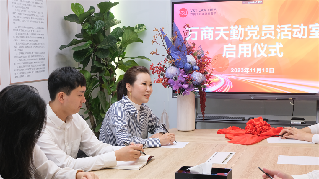 为优化党员学习空间,丰富党员活动阵地,2023年11月10日,万商天勤党总支举行党员活动室揭牌仪式。深圳市律师行业党委第一副书记、万商天勤创始合伙人张丽杰,万商天勤党总支书记陈冰梅,第一党支部书记张海文,第二党支部书记马彦忠,第三支部书记陈卫滨,支部委员陈晓秋、陈淑蓉、周淑烟及各支部党员出席了本次活动。