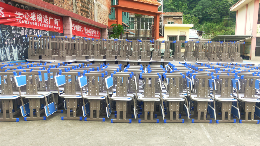 一套套崭新的课桌椅与床架,汇集了万商天勤人温暖的善意。在经过近一个月的征集、沟通、对接、采购、运输等筹备后,万商天勤顺利为云南省广南县板蚌乡中心学校捐赠共计500套课桌椅,97套床架。