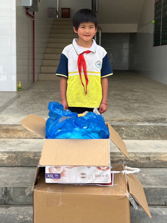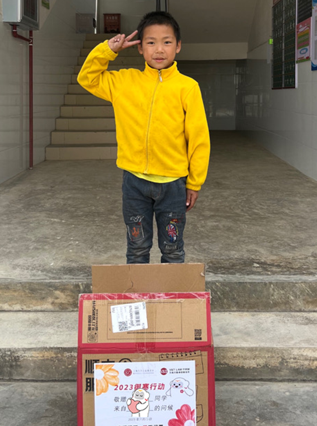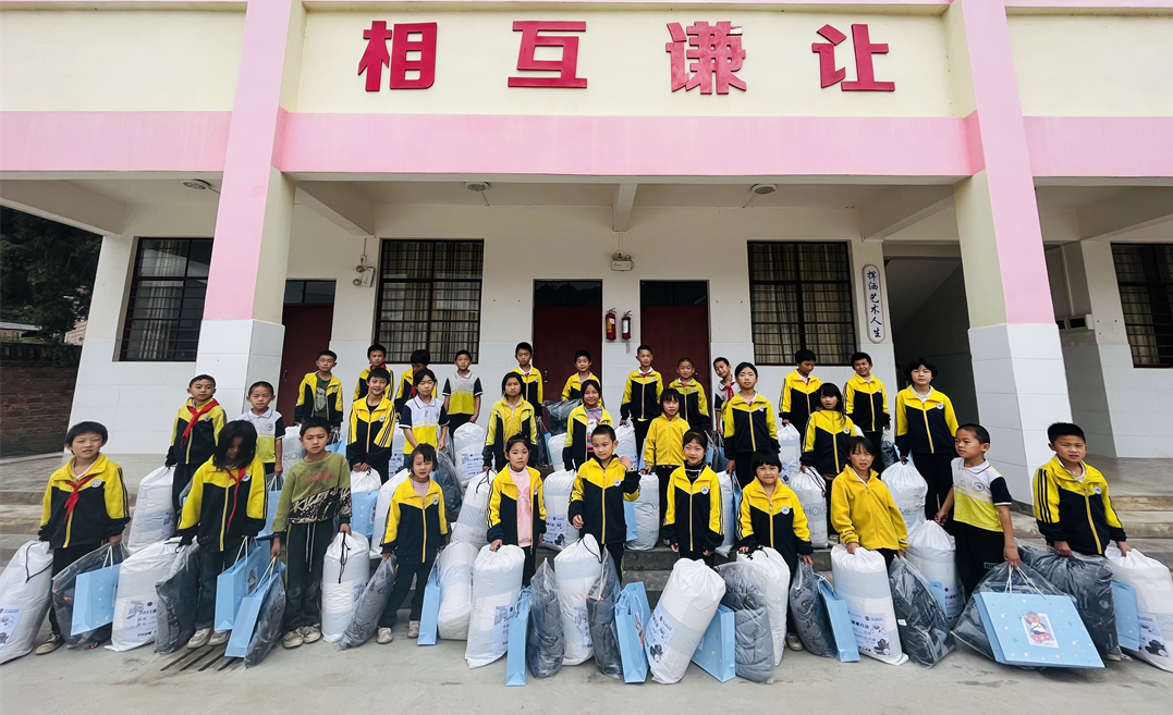 校方收到衣物包裹后,将包裹一一送到孩子们的手上,看到孩子们收到衣物后的开心笑容,更让我们相信遥远而来的善意也会如冬日暖阳照耀孩子们的心间,鼓励孩子们向阳生长,拥抱明天。