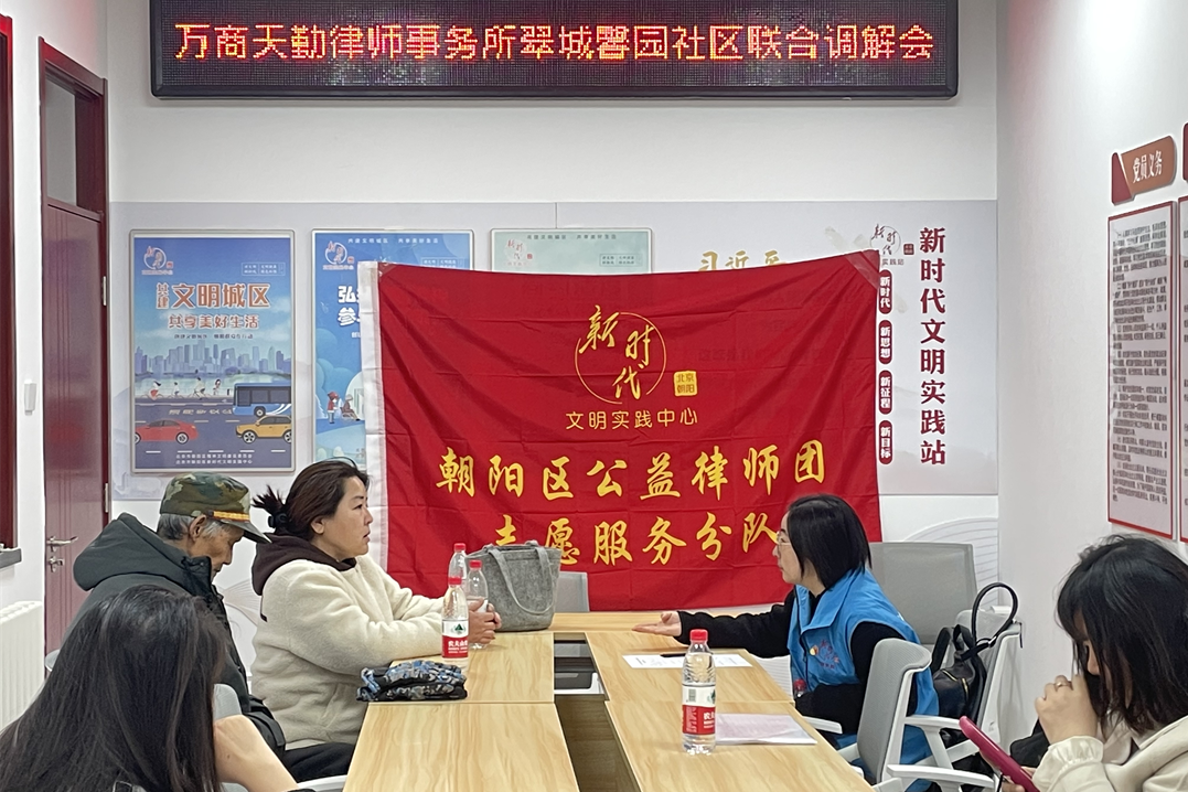 2024年4月10日,万商天勤党总支受垡头街道翠城馨园社区邀请,开展一场关于养老及遗产继承的人民调解活动。万商天勤党总支派遣第一党支部孙艳律师和党务专员刘志伟同志参与本次人民调解活动。