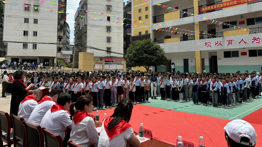上午11点,“律师妈妈”团的成员们准时抵达宁都县第四小学,全校师生夹道欢迎,迎接远道而来的深圳律师,孩子们纯真的笑脸与热情的红领巾成为最温暖的欢迎礼。