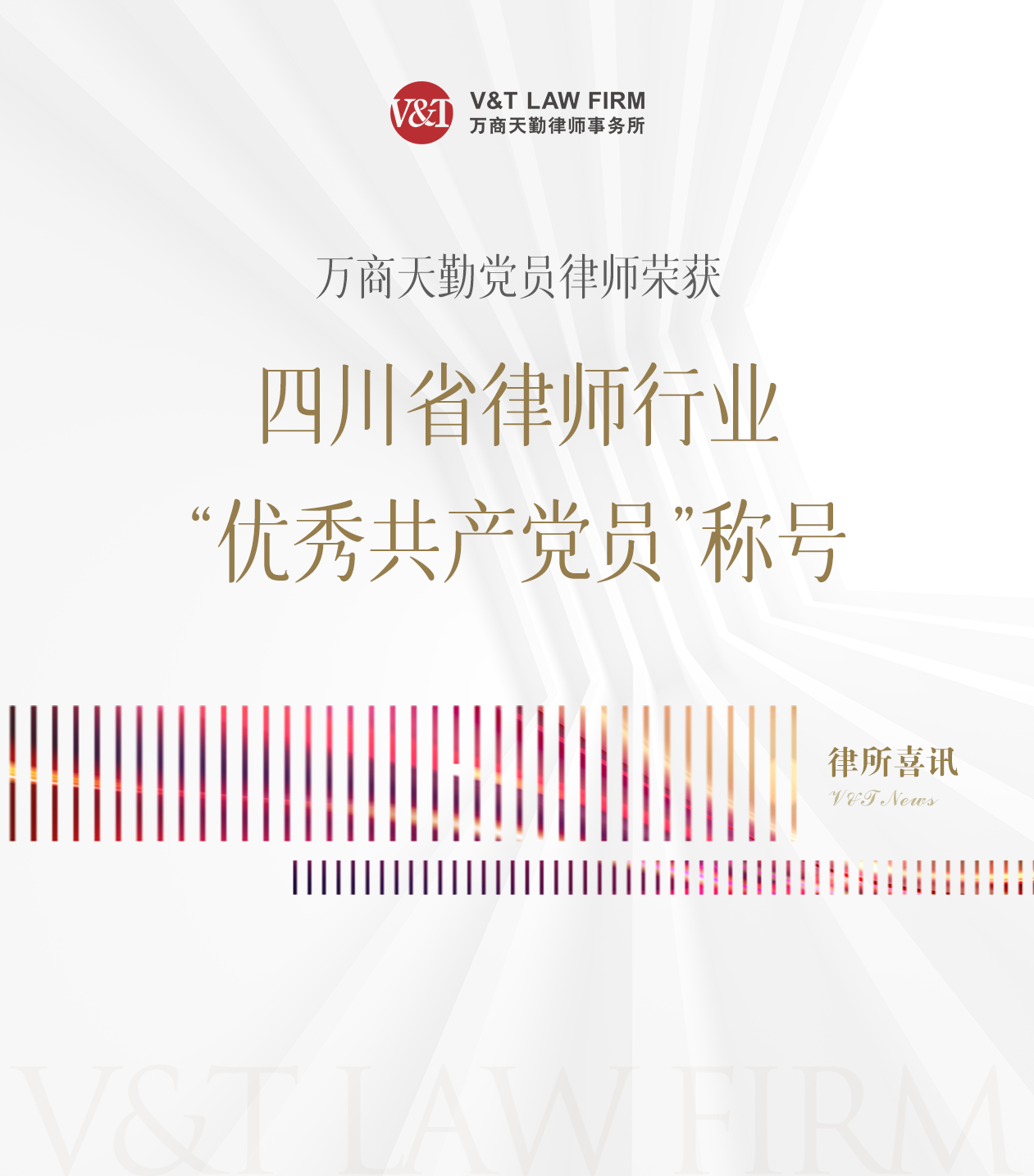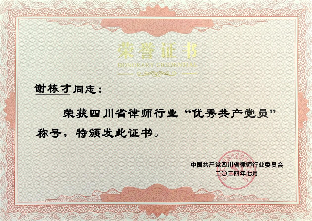 在中国共产党迈进103周年华诞的光荣时刻,四川省律师行业党委作出《关于表彰四川省律师行业先进基层党组织、优秀共产党员、优秀党务工作者的决定》,万商天勤成都办公室党支部副书记、合伙人谢栋才律师荣获四川省律师行业“优秀共产党员”称号。