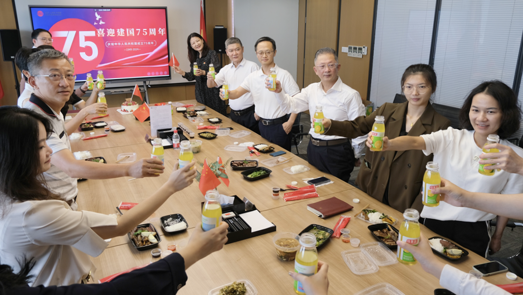 2024年9月29日,秋风轻柔,阳光明媚。为庆祝伟大祖国成立75周年,万商天勤党总支开展了专题午餐会活动,为祖国母亲庆生,祝愿伟大祖国繁荣昌盛。万商天勤党总支书记陈冰梅、副书记梁华、第一党支部书记张海文、第二党支部书记马彦忠、党总支委员张旭(男)、各支部委员张旭(女)、陈淑蓉、周淑烟、韩笑及各支部党员近二十人参加了本次活动。