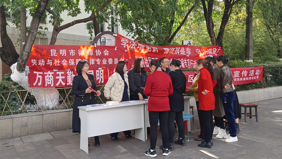 2024年11月26日,万商天勤昆明办公室在昆明市律师协会的号召下,在社区开展公益普法活动,以“学法增见识 懂法辨是非 守法端品德”为主题,向社区居民传播法律知识、提供公益法律咨询服务。