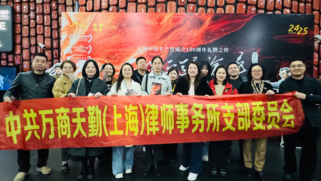 2025年3月28日,万商天勤上海办公室党支部组织党员律师集体观看话剧《人间正道是沧桑》。该剧是为中国共产党百年华诞献上的佳作,以波澜壮阔的历史为背景,描绘出一幅革命史诗画卷,生动再现了那段光辉而艰辛的岁月,致敬先辈们的坚定信仰与无私奉献。