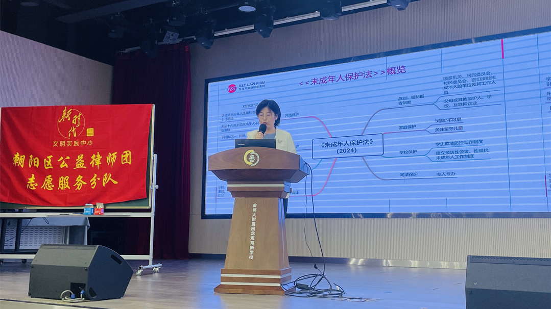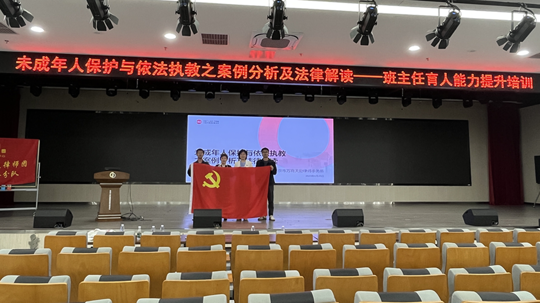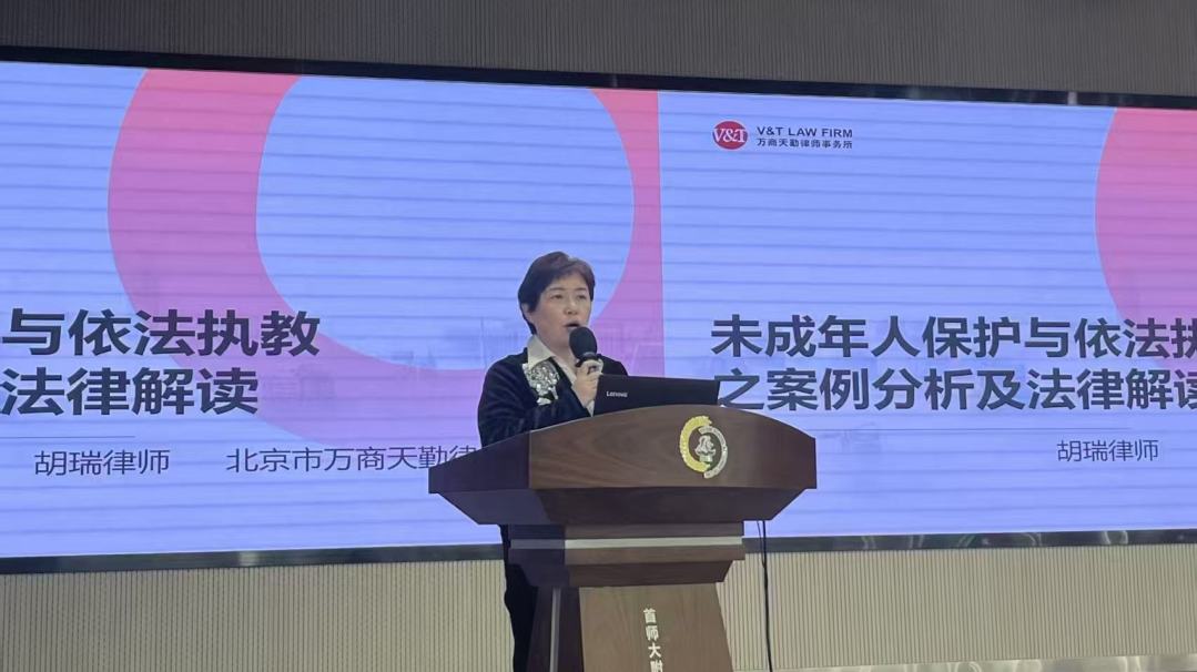 为深入推进依法治校进程,全面提升教师法律素养,强化教师法治观念,2025年4月27日,万商天勤党总支应首都师范大学附属回龙观育新学校之邀,走进校园,开展了一场聚焦未成年人保护与依法执教的案例分析及法律解读专题讲座。此次讲座由回龙观育新学校德育处杜福秋主任主持,由万商天勤合伙人胡瑞律师主讲,北京办公室人力资源经理黄小林、党务专员刘志伟亦参与其中,共赴这场法治教育的盛宴。