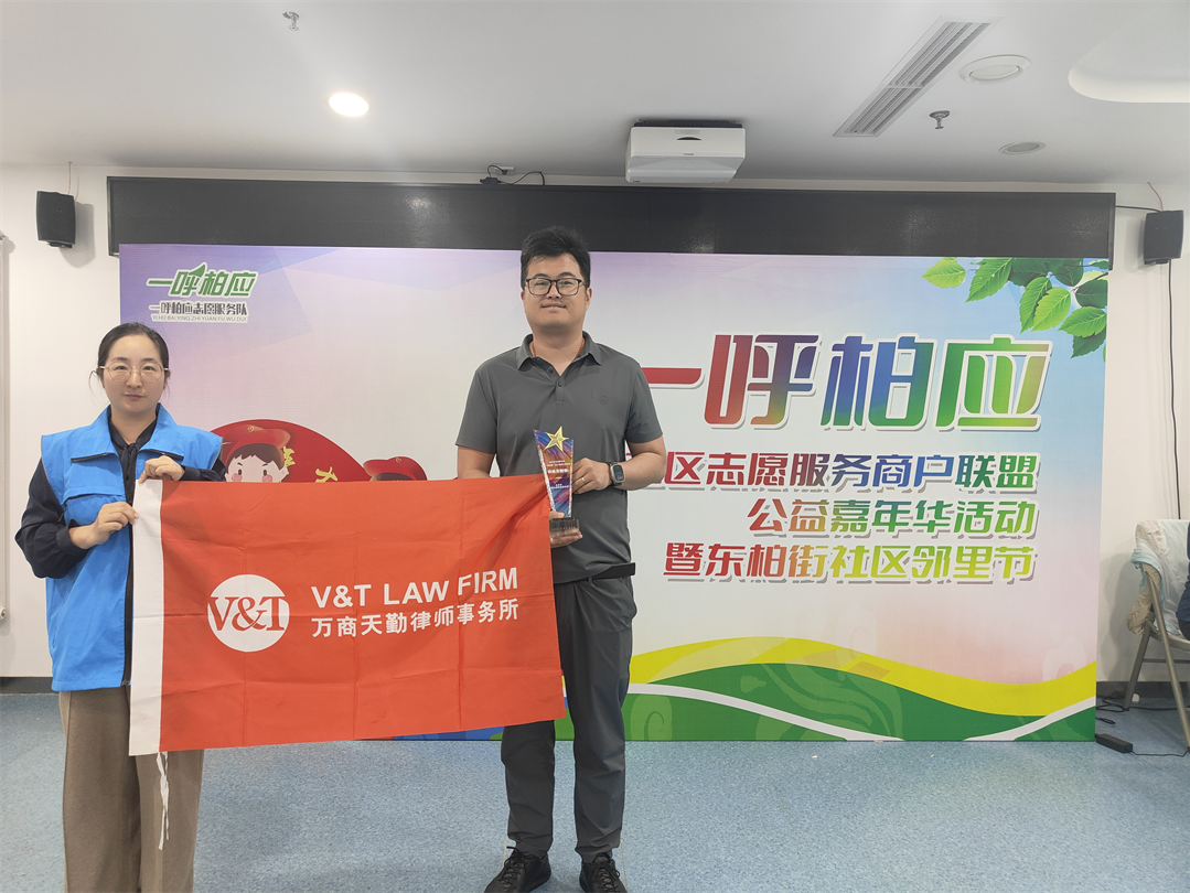 本次普法活动是法治与民生的双向奔赴,不仅收获了丰硕成果,还推进基层民众的学法热潮。为此,东柏街社区特别授予万商天勤党总支“特殊贡献奖”,表彰其在推动“法治+社区”融合治理中的创新实践。奖杯上镌刻的不仅是荣誉,更是对党建引领法治护航模式的认可——从合同审查到遗产公证,从物业调解到消费维权,万商天勤党总支用365天不间断的公益法律服务,有效化解基层矛盾,成为社区治理的重要支撑。