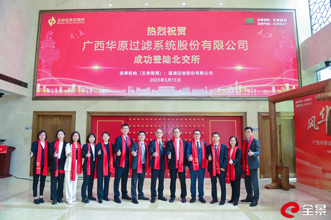 2023年5月15日,广西华原过滤系统股份有限公司成功在北京证券交易所上市(证券简称:华原股份,股票代码:838837),成为广西首家在北京证券交易所上市的国有企业。