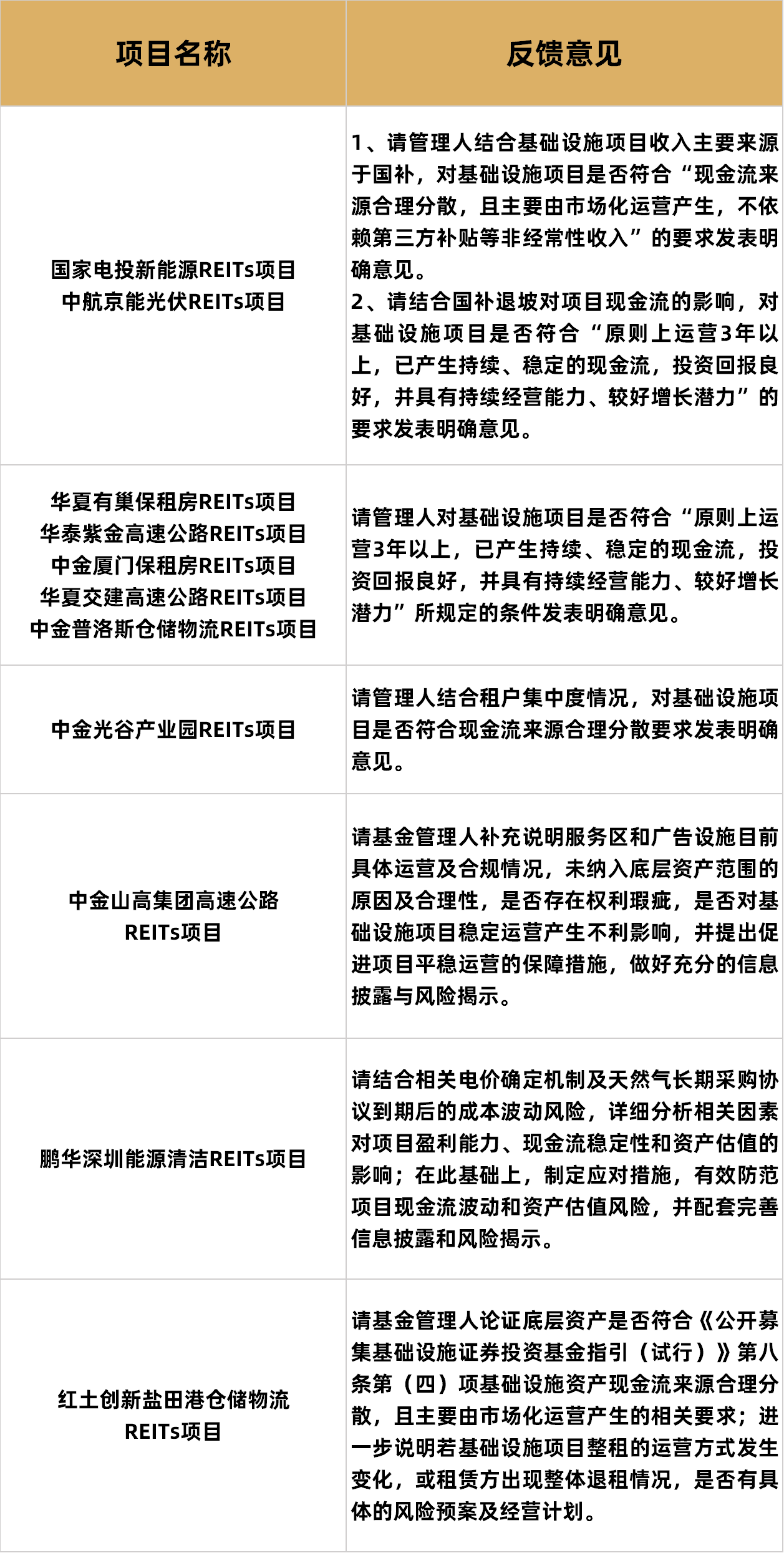 经统计已发行公募REITs项目反馈意见,涉及基础设施项目现金流的监管反馈主要有: